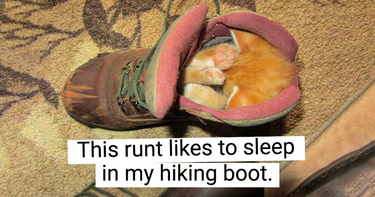 I myself have a cat and I kid you not, it is as if he finds the most unforgettable place to sleep and chooses it for his nap. Usually, it is sleeping right on my face so I can’t breathe but we are not here to talk about my cat, we are here to see some cute animals pictures. So don’t let me hold you any longer and scroll below to take a look for yourself. After all, what is more beautiful than tiny babies sleeping in someone’s shoe? Yes, we are going to ignore the fact that shoes usually don’t smell nice.