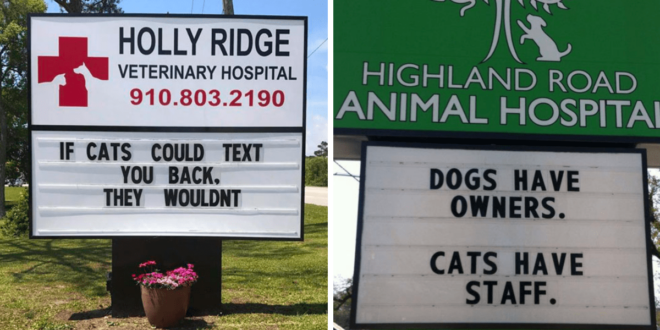 30 Hysterical Cat Jokes Vet Clinics Put Up On Their Signs