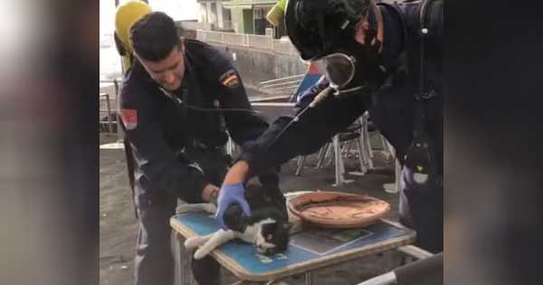 Police Officers Drop Everything To Resuscitate A Cat After Volcano Eruption.