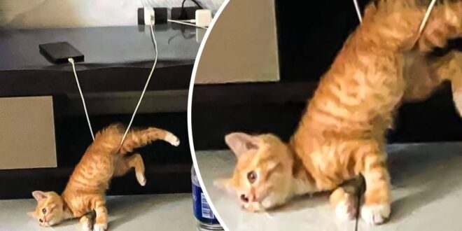 In this article you’ll find all sorts of funny/awkward moments fellow hoomans caught their pets in. From a cat getting tangled in a charging cable to a hamster finally collapsing on its own wheel after an exhausting run. Pets can get so clumsy at times that they end up in weird situations and we humans too are left astounded. Scroll down and check it out;
