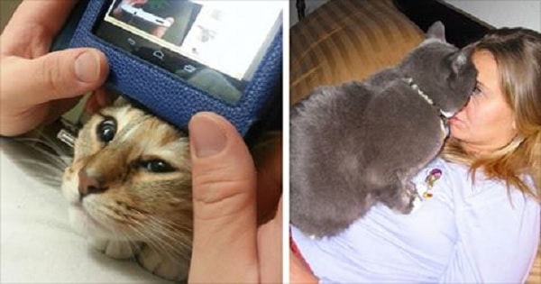 The adorable cats in the photos below have some trouble realizing that they’re honing in on their humans’ personal space.
