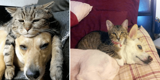 50 Adorable Photos Of Cats Who’re Using Dogs As Pillows