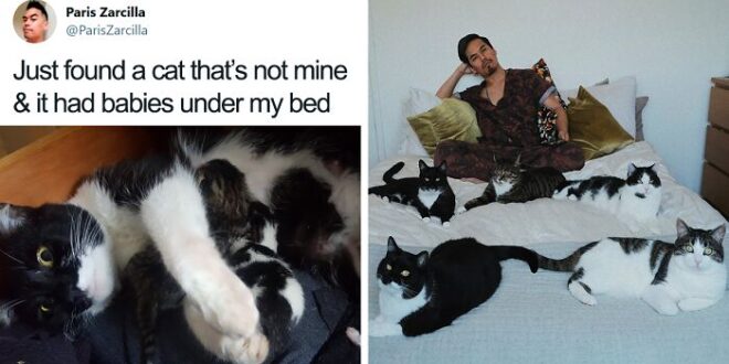 This wasn’t his cat, but it was in his house anyway and gave birth to four little fur babies there.