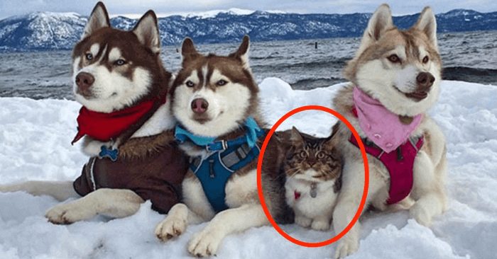 But fortunately, he was saved by an owner of three huskies, with whom he grew up. Today, Kozy is already an adult cat, who considers himself a big and bold dog like his “brothers”.