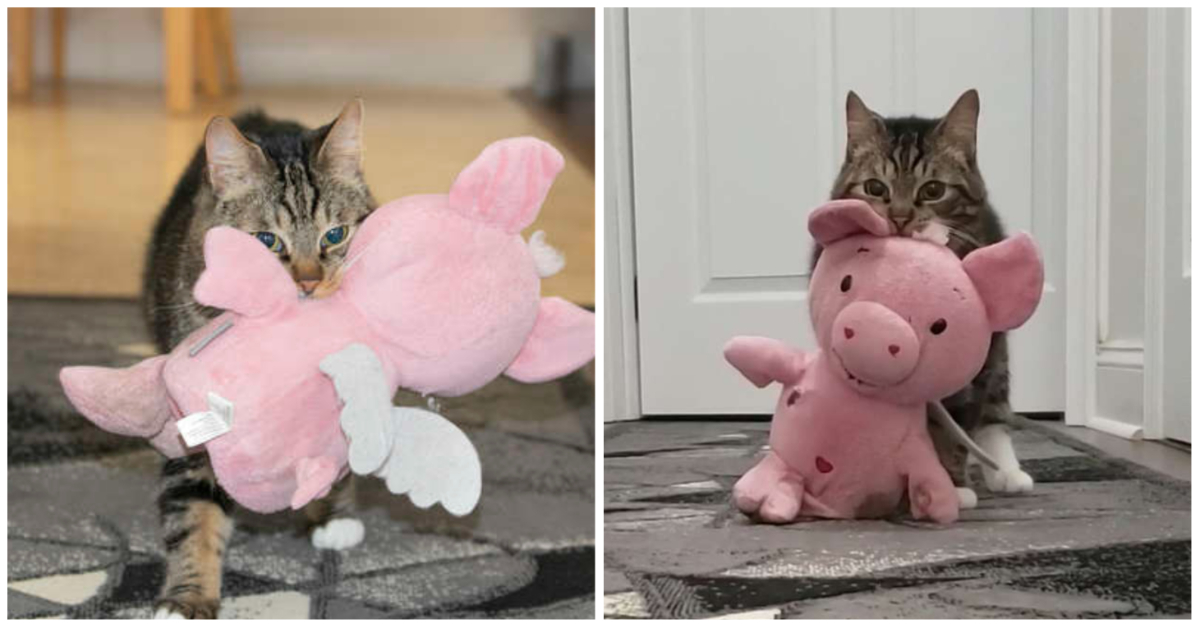 Cat Loves His Favorite Stuffed Pig And Takes It Everywhere He Goes