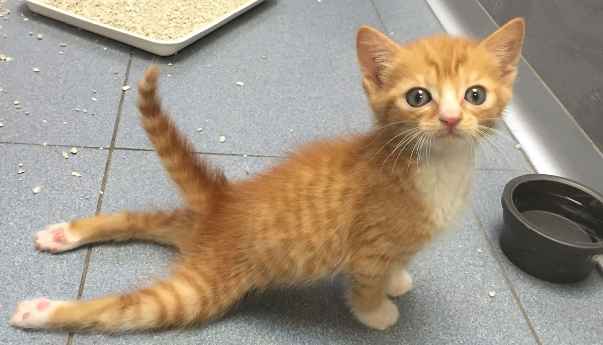 A paralyzed kitten, his legs were so badly twisted they needed to help him become mobile again while at the same time giving him physical therapy. So the decision was made to build him his very own wheelchair.