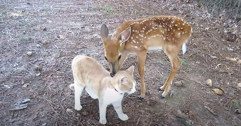 Brave Friendly Cat Makes Friends With Rescued Wild Deer