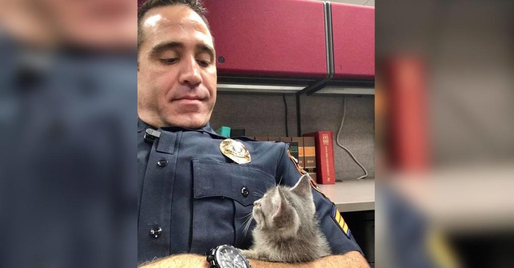 This Policeman Comforts A Kitten Lost In The Police Station And Decides To Be His New Dad