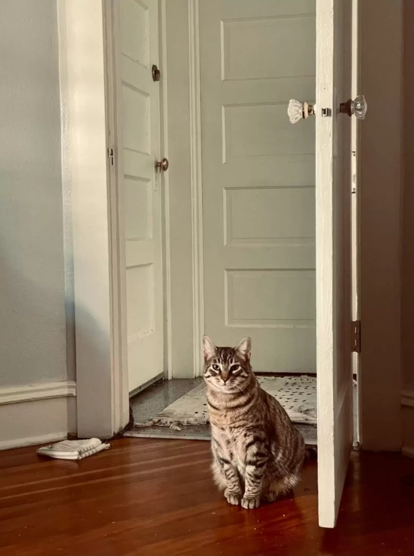 About a year ago, Zeppelin came to discover a recurring event at home. Every morning, around the same time, a man dressed in blue would arrive outside the front door and slip mail through the mail slot — papery playthings Zeppelin grew fond of pawing at.