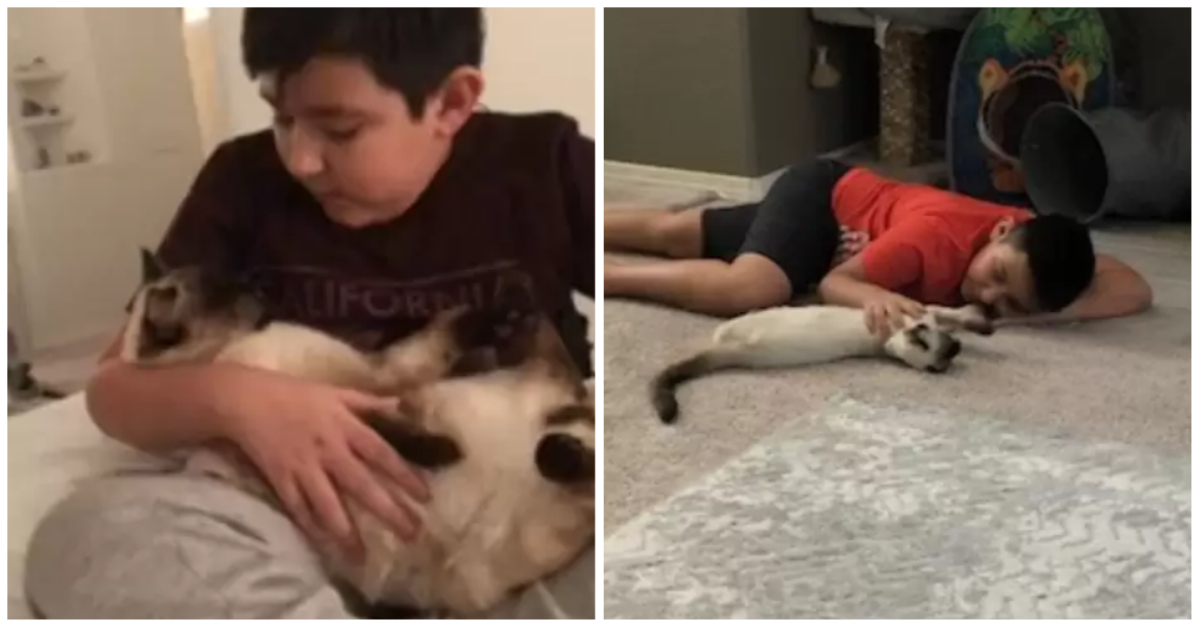 Boy Finally Sees His Lost Cat Again Can’t Hold Back Tears