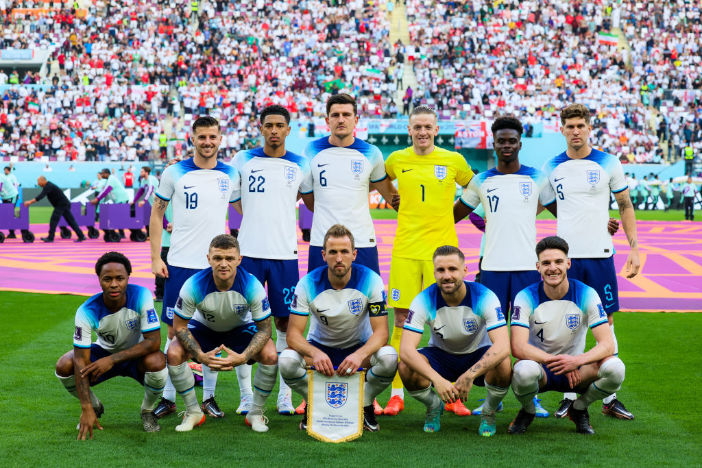 DOHA, QATAR – NOVEMBER 21: Starting line-up of England during the FIFA World Cup Qatar 2022 Group B match between England and IR Iran at Khalifa International Stadium on November 21, 2022 in Doha, Qatar. (Photo by VCG/VCG via Getty Images)