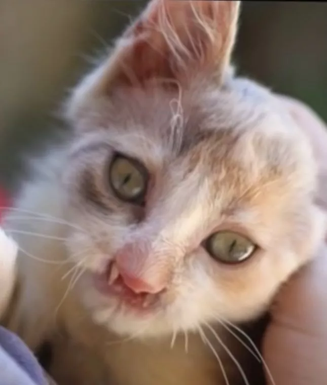 At only four weeks old, this baby kitten was found abandoned on the side of the road in Istanbul, Turkey.