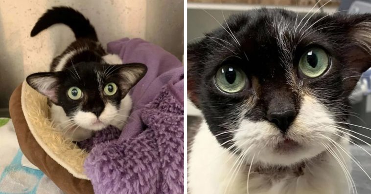 “Alisha Kidwell, MD, is treating her.” Yana Aviles, an assistant veterinarian at the clinic, describes the cat as “extremely nice and friendly.”