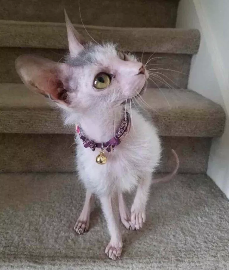 These are the first things people tend to say when they meet Possum, an unusual-looking cat with gray fur, bald patches and a rat-like tail.