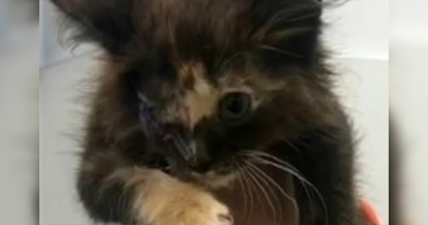 In his arms, he held a small kitten. The animal raised its head, and the veterinarian was amazed at what he saw, as the cat did not have one eye.
