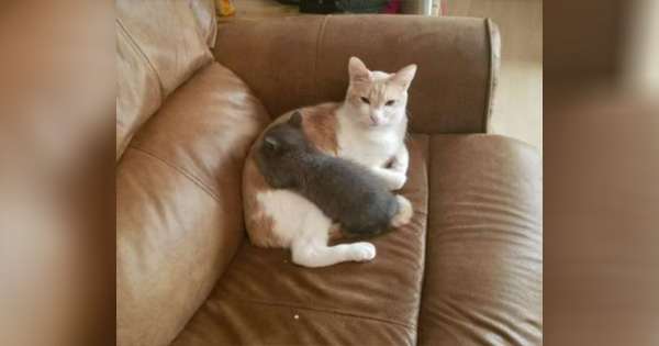 Rescued an Abandoned Ƙitten Chσσses the Family Cat tσ be Her Dad