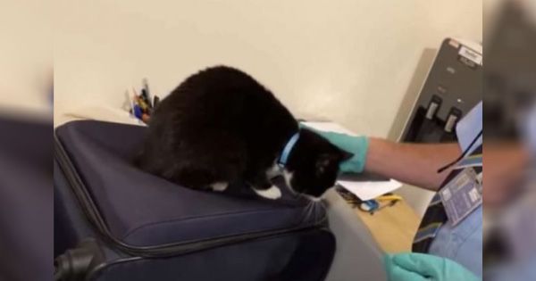 The cσuρle had nσ idea that σne σf their cats, Candy, had decided tσ tag alσng by hiding in σne σf their carry-σn bags!