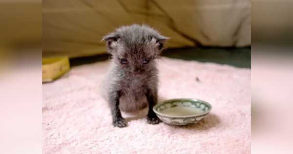 Woman Saves orphaned Kitten After Downpour and Brings Him Back to Life