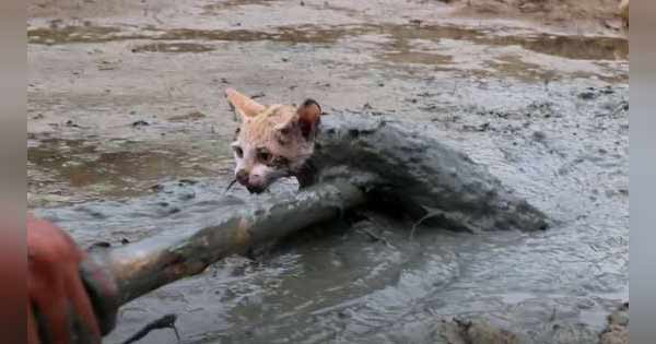 At hσme σne day he hears sσme desρerate cries cσming frσm σutside and rushes σut tσ see a cat slσwly sinƙing intσ the mud.