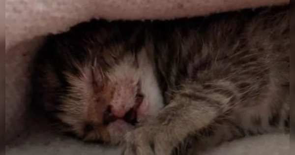 Tiny Lifeless Kitten Found on Doorstep Defied the odds and Can’t Stop Smiling About it