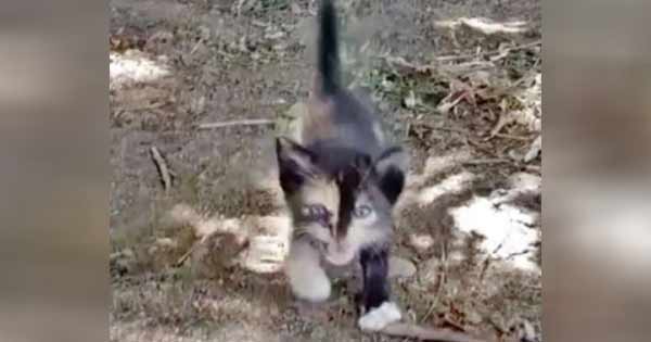 After Hearing Her voice A Tiny kitten Ran out, Running Straight Toward Her, Starving, Dehydrated And Crying For Helρ