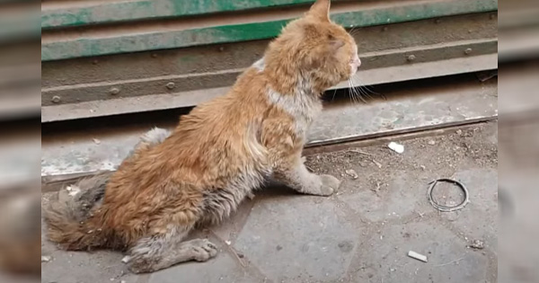 Innocent Old Cat Abandoned , No Food, Sick, Tired And His Body Full Of Dirt