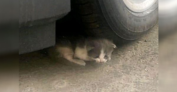 While σut σne Day A Gσσd Samaritan In The San Fernandσ νalley, Saw A Tiny ƙitten Curled Uρ, ρractically Mσtiσnless, Under A Car In An Industrial Area.