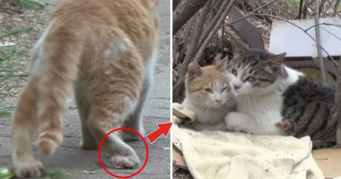 A Normal Cat Takes Friendship To Another Level When He Takes Care And Feeds His Disabled Best Friend