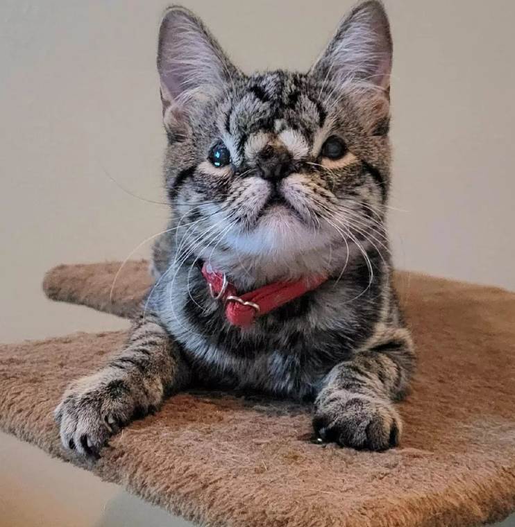 Kaya was born with acongenital facial abnormality which gives her a squishy, grumpy expression. And once Odelkis Barrera, founder of the TO Rescue(The Ontario Rescue), saw a photo of Kaya’s unique face, she knew she had to help the little kitten.