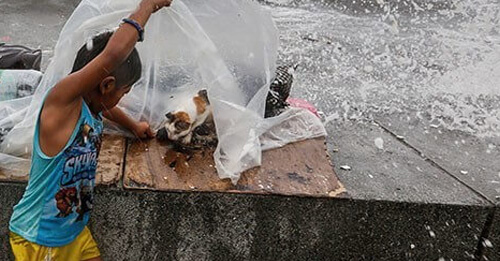 A Young Filipino Boy Shielded Mother Cat From Raging Typhoon As She Was Giving Birth