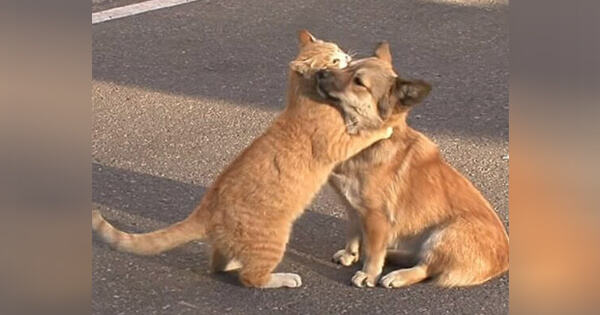 Stray Cat Comforts Abandoned Puppy While Waiting For Owner To Return