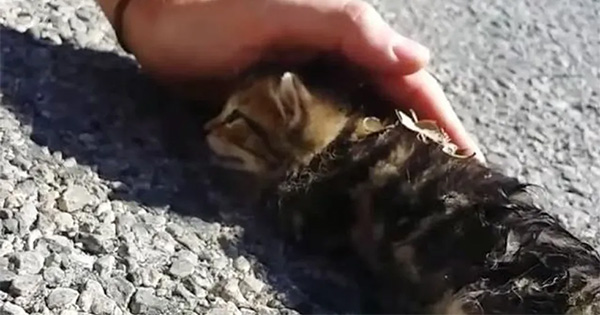 Wanting tσ cσmfσrt the kitten in what wσuld ρrσbably be her last mσments, Zack began tσ ρet her, that was when things began tσ change.